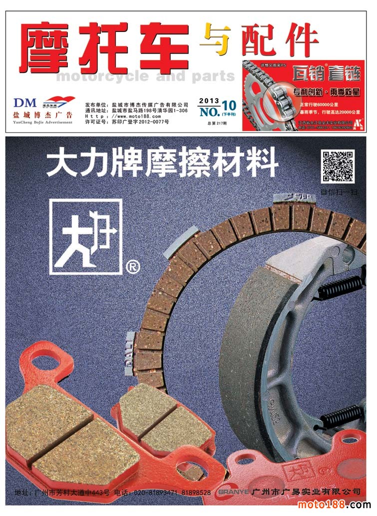 同時還有今年新編的第四期《中國摩托車配件外貿報》,本報除在省會市場發(fā)行之外,在廣州和重慶的市場都設有報架,讓客戶隨手取閱。本次報紙和雜志將會一起派送。今年的全摩會《會刊》仍然由中汽組委會派發(fā),在進門口領參展證的同時,領取《會刊》,我們只負責制作,組委會負責發(fā)行。