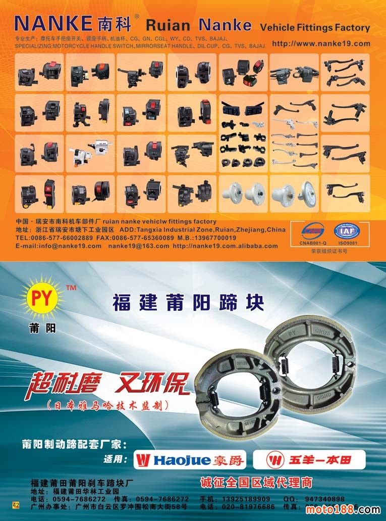 隨著全摩會(huì)的閉幕,今年的配件行業(yè)經(jīng)營(yíng)也進(jìn)入到收宮階段,北方的天氣也漸漸轉(zhuǎn)冷,北方的市場(chǎng)也逐步趨淡。今年的市場(chǎng)銷(xiāo)售整體都不太好,無(wú)論是外貿(mào)還是內(nèi)銷(xiāo)市場(chǎng),我們雜志在今年也很努力,但是也能明顯地感覺(jué)到市場(chǎng)的寒意。盡管如此,我們?nèi)匀蝗〉昧溯^好的成績(jī):我們對(duì)華東市場(chǎng)進(jìn)行了精耕細(xì)作,走訪(fǎng)了市場(chǎng)的每一個(gè)客戶(hù),搜集更新了市場(chǎng)的資料,并在南京秋摩會(huì)和重慶摩博會(huì)上將華東市場(chǎng)的第一手資料送給了企業(yè);同時(shí),在廣州市場(chǎng)也更新了最新的市場(chǎng)資料,并在秋摩會(huì)將這本資料送給了行業(yè)同仁。