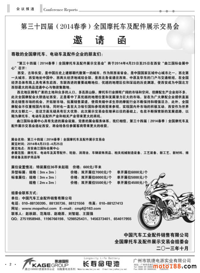 隨著全摩會(huì)的閉幕,今年的配件行業(yè)經(jīng)營也進(jìn)入到收宮階段,北方的天氣也漸漸轉(zhuǎn)冷,北方的市場也逐步趨淡。今年的市場銷售整體都不太好,無論是外貿(mào)還是內(nèi)銷市場,我們雜志在今年也很努力,但是也能明顯地感覺到市場的寒意。盡管如此,我們?nèi)匀蝗〉昧溯^好的成績:我們對華東市場進(jìn)行了精耕細(xì)作,走訪了市場的每一個(gè)客戶,搜集更新了市場的資料,并在南京秋摩會(huì)和重慶摩博會(huì)上將華東市場的第一手資料送給了企業(yè);同時(shí),在廣州市場也更新了最新的市場資料,并在秋摩會(huì)將這本資料送給了行業(yè)同仁。
