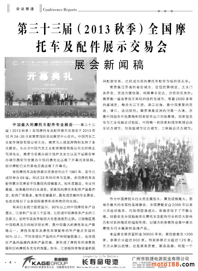 目前摩托車配件企業(yè)面臨比較嚴(yán)峻的市場現(xiàn)狀,但是我們了解到許多企業(yè)并不是坐以待毖,同時這個行業(yè)也在各個方面尋求突破,并且迎來了新的商機。我們雜志明年在信息發(fā)布上,也將增加和摩配行業(yè)有關(guān)的外延,如電動摩托車、三輪摩托車、助力車、小型通機等。這些零部件,都是我們配件廠能制造的,技術(shù)也是相通的。目前電動摩托、三輪摩托,小型通機市場都很不錯,產(chǎn)銷兩旺,有的還是有良好的發(fā)展遠(yuǎn)景。除了通過紙媒來推廣和普及外,我們的網(wǎng)站也將同時增加這方面的動態(tài)信息,發(fā)布即時報道,開通這幾個板塊的專題,為行業(yè)傳輸更多的信息;我們的網(wǎng)站也將在今冬明春大改版,進(jìn)一步擴(kuò)容。在嚴(yán)峻的形勢下,我們一定要逆流而上,拓展生存和發(fā)展空間,同時我們也會將這幾方面的信息向行業(yè)傳遞,供行業(yè)企業(yè)決策參考。當(dāng)然我們更要在市場的第一線增加發(fā)行,補充完善這幾方面的信息數(shù)據(jù)庫。這些工作先從各省會城市開始,由大市場向小市場拓展,充分利用現(xiàn)行發(fā)行網(wǎng)絡(luò)的功能,增加不同行業(yè)和市場的發(fā)行。