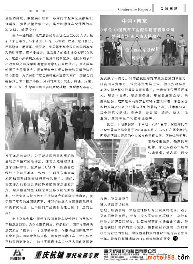 隨著全摩會(huì)的閉幕,今年的配件行業(yè)經(jīng)營(yíng)也進(jìn)入到收宮階段,北方的天氣也漸漸轉(zhuǎn)冷,北方的市場(chǎng)也逐步趨淡。今年的市場(chǎng)銷售整體都不太好,無論是外貿(mào)還是內(nèi)銷市場(chǎng),我們雜志在今年也很努力,但是也能明顯地感覺到市場(chǎng)的寒意。盡管如此,我們?nèi)匀蝗〉昧溯^好的成績(jī):我們對(duì)華東市場(chǎng)進(jìn)行了精耕細(xì)作,走訪了市場(chǎng)的每一個(gè)客戶,搜集更新了市場(chǎng)的資料,并在南京秋摩會(huì)和重慶摩博會(huì)上將華東市場(chǎng)的第一手資料送給了企業(yè);同時(shí),在廣州市場(chǎng)也更新了最新的市場(chǎng)資料,并在秋摩會(huì)將這本資料送給了行業(yè)同仁。