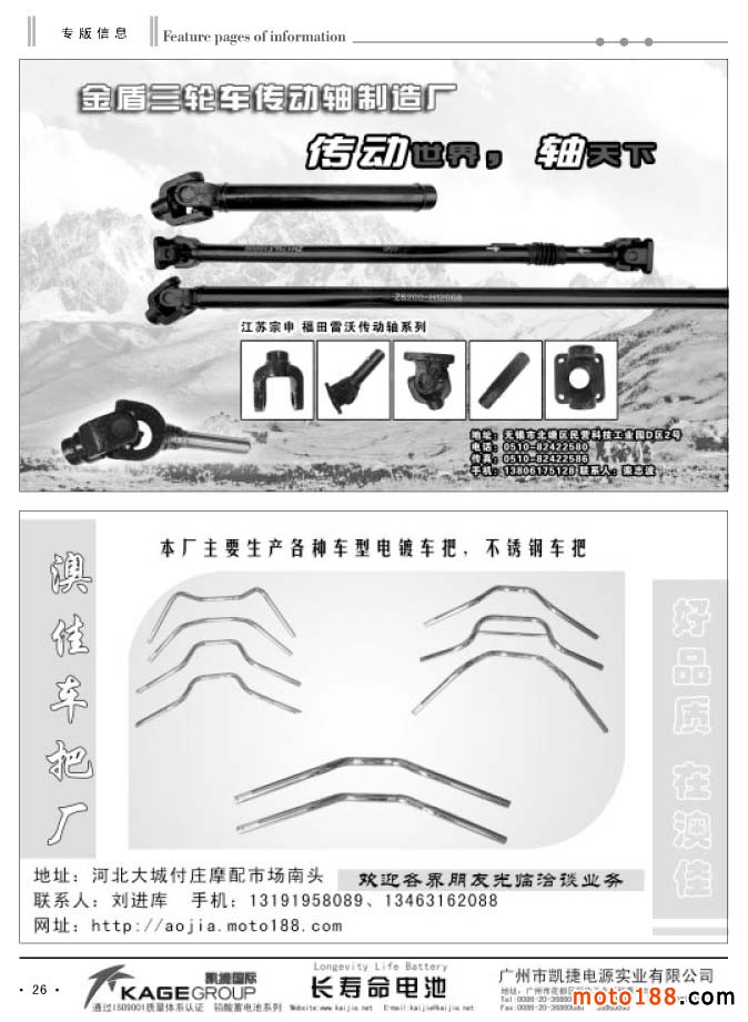 目前摩托車配件企業(yè)面臨比較嚴峻的市場現(xiàn)狀,但是我們了解到許多企業(yè)并不是坐以待毖,同時這個行業(yè)也在各個方面尋求突破,并且迎來了新的商機。我們雜志明年在信息發(fā)布上,也將增加和摩配行業(yè)有關的外延,如電動摩托車、三輪摩托車、助力車、小型通機等。這些零部件,都是我們配件廠能制造的,技術也是相通的。目前電動摩托、三輪摩托,小型通機市場都很不錯,產銷兩旺,有的還是有良好的發(fā)展遠景。除了通過紙媒來推廣和普及外,我們的網站也將同時增加這方面的動態(tài)信息,發(fā)布即時報道,開通這幾個板塊的專題,為行業(yè)傳輸更多的信息;我們的網站也將在今冬明春大改版,進一步擴容。在嚴峻的形勢下,我們一定要逆流而上,拓展生存和發(fā)展空間,同時我們也會將這幾方面的信息向行業(yè)傳遞,供行業(yè)企業(yè)決策參考。當然我們更要在市場的第一線增加發(fā)行,補充完善這幾方面的信息數據庫。這些工作先從各省會城市開始,由大市場向小市場拓展,充分利用現(xiàn)行發(fā)行網絡的功能,增加不同行業(yè)和市場的發(fā)行。
