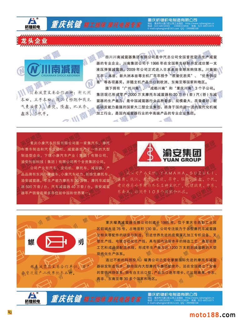 和這些歷經(jīng)風(fēng)雨在摩配行業(yè)堅(jiān)守的同仁們一樣,我們也煉得自信與從容。新的一年我們雜志以全新的面貌出現(xiàn),我們采用全彩色出刊,同時(shí)將我們的服務(wù)對(duì)象橫向延伸。與我們的同仁一樣,立足摩配,橫向拓展,內(nèi)外兼修,努力做好雜志,除了提升外觀品相,更是注重在內(nèi)容上的變化。每期雜志用十頁左右的文字來廣角掃描我們摩托車配件行業(yè)的子行業(yè),這一期推出的是減震器專題。上一期化油器專題出刊以后,不光受到市場(chǎng)的歡迎,有些企業(yè)還把我們的雜志認(rèn)真地收藏保存好,因?yàn)橛胁簧傩畔?duì)于他們的生產(chǎn)、經(jīng)營(yíng)都有一定幫助。對(duì)我們來說也是迫使我們更深入地了解摩配的各個(gè)子行業(yè)。自從前年摩托車行業(yè)開始強(qiáng)制提高排放標(biāo)準(zhǔn)以后,我們片面地認(rèn)為化油器這個(gè)行業(yè)會(huì)被電噴完全取代,這個(gè)產(chǎn)業(yè)是不是已經(jīng)步入到夕陽期?通過編排我們較深刻的對(duì)這一產(chǎn)業(yè)有所了解,制造之地一派欣欣向榮的景象,在我們摩托車業(yè)需求量減少之時(shí),我們的制造廠已經(jīng)在通機(jī)領(lǐng)域干得風(fēng)生水起,有不少廠即使擴(kuò)大產(chǎn)能也供不應(yīng)求。當(dāng)?shù)氐胤秸矎倪@個(gè)產(chǎn)業(yè)得到許多實(shí)惠,一個(gè)雙贏的局面,這就是產(chǎn)業(yè)的正能量。其實(shí)市場(chǎng)如何變幻,總有一批做得好的龍頭企業(yè)在努力工作,打造自己的名牌,眼光不僅僅局限面前,更多地瞄準(zhǔn)了國(guó)際市場(chǎng)。中國(guó)制造能漂洋過海,被國(guó)外消費(fèi)者所接受,正是這樣一批行業(yè)精英為國(guó)家和民族在努力。