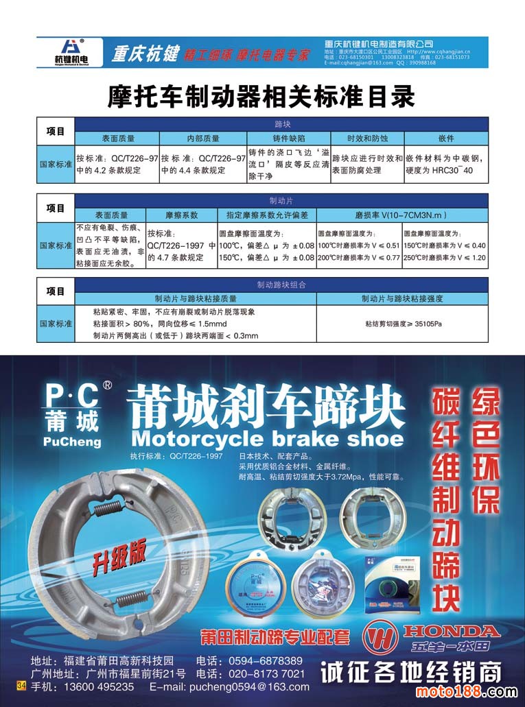 繼2013年12期開(kāi)始全彩色出刊,再加上每期一個(gè)專題的配件子行業(yè)的廣角介紹,我們積累了一定的經(jīng)驗(yàn),也有信心做好全部子行業(yè)的介紹。目前摩托車分為六大部件,每一大部件又細(xì)分為十幾二十幾不少的子部件,和摩托車有關(guān)的附件也可另算為一大類,因而我們要想全方位做完各個(gè)子行業(yè),就需要有幾年的時(shí)間。經(jīng)過(guò)這三期的編排,使我們進(jìn)一步加深對(duì)摩托車配件行業(yè)的了解,這一期剎車蹄塊我們本來(lái)認(rèn)為這個(gè)子行業(yè)報(bào)道的題材和內(nèi)容有限,但我們把資料匯總以后,原來(lái)這些行業(yè)也別有洞天,后來(lái)我們不得不壓縮了題材,精選了內(nèi)容,還是排了十幾張紙;再加上我們又涉及到三輪摩托車、電動(dòng)摩托車,沒(méi)想到就連小型通機(jī)也要用蹄塊制動(dòng)。