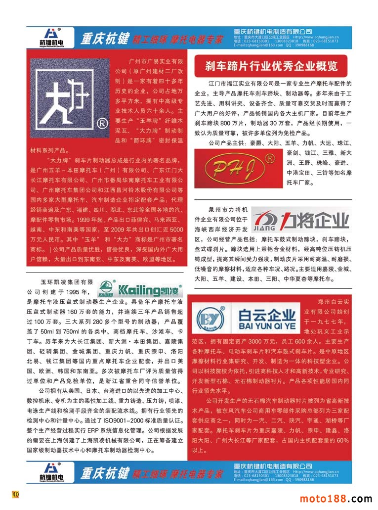 繼2013年12期開始全彩色出刊,再加上每期一個專題的配件子行業(yè)的廣角介紹,我們積累了一定的經(jīng)驗,也有信心做好全部子行業(yè)的介紹。目前摩托車分為六大部件,每一大部件又細分為十幾二十幾不少的子部件,和摩托車有關的附件也可另算為一大類,因而我們要想全方位做完各個子行業(yè),就需要有幾年的時間。經(jīng)過這三期的編排,使我們進一步加深對摩托車配件行業(yè)的了解,這一期剎車蹄塊我們本來認為這個子行業(yè)報道的題材和內(nèi)容有限,但我們把資料匯總以后,原來這些行業(yè)也別有洞天,后來我們不得不壓縮了題材,精選了內(nèi)容,還是排了十幾張紙;再加上我們又涉及到三輪摩托車、電動摩托車,沒想到就連小型通機也要用蹄塊制動。