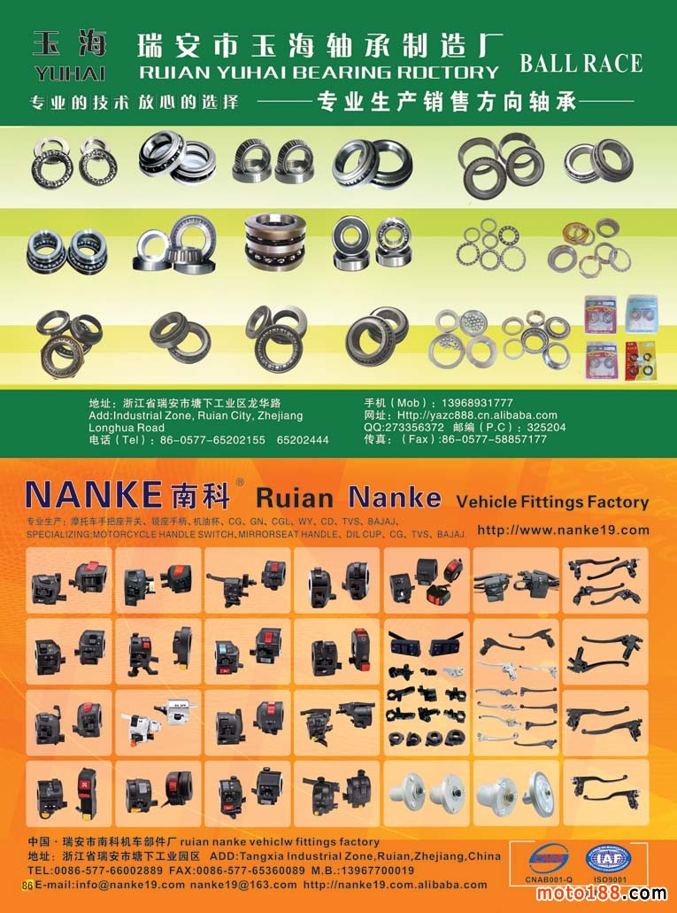 繼2013年12期開始全彩色出刊,再加上每期一個(gè)專題的配件子行業(yè)的廣角介紹,我們積累了一定的經(jīng)驗(yàn),也有信心做好全部子行業(yè)的介紹。目前摩托車分為六大部件,每一大部件又細(xì)分為十幾二十幾不少的子部件,和摩托車有關(guān)的附件也可另算為一大類,因而我們要想全方位做完各個(gè)子行業(yè),就需要有幾年的時(shí)間。經(jīng)過這三期的編排,使我們進(jìn)一步加深對(duì)摩托車配件行業(yè)的了解,這一期剎車蹄塊我們本來(lái)認(rèn)為這個(gè)子行業(yè)報(bào)道的題材和內(nèi)容有限,但我們把資料匯總以后,原來(lái)這些行業(yè)也別有洞天,后來(lái)我們不得不壓縮了題材,精選了內(nèi)容,還是排了十幾張紙;再加上我們又涉及到三輪摩托車、電動(dòng)摩托車,沒想到就連小型通機(jī)也要用蹄塊制動(dòng)。