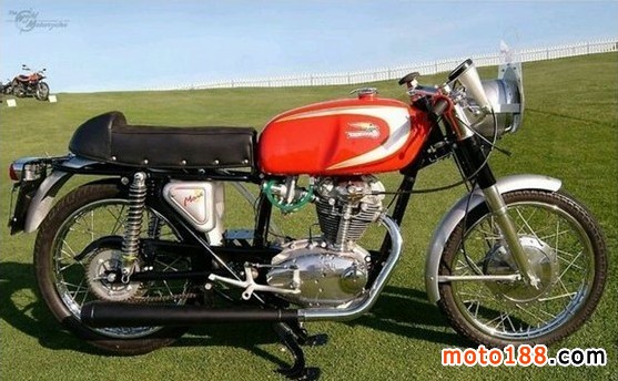 250mark 3 生產(chǎn)年份1967-1968 引擎為單缸風(fēng)冷四沖程SOHC;排量249;壓縮比10.0:1;最大馬力28hp8500rpm;5檔位;前剎車180毫米鼓式;后剎車160毫米鼓式;整車質(zhì)量127公斤;油箱13升;四分之一英里18.9秒