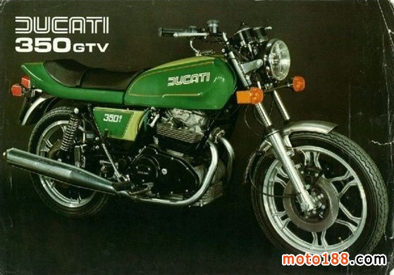 350GTV 生產(chǎn)年份1975-1976 引擎為空氣冷卻四沖程平行雙缸SOHC;排量348.9;壓縮比9.6:1;前剎車2*256毫米盤式;后剎車單257毫米盤式;整車質(zhì)量183公斤;油箱14升