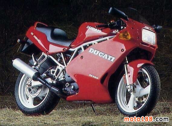 400SS 生產(chǎn)年份1989-1996 引擎為空氣冷卻四沖程雙氣缸;排量398;壓縮比10.0:1;最大馬力42hp7000rpm;最大扭矩26ft-ib8500rpm;整車質(zhì)量173公斤;油箱17升;最高時速107英里/小時