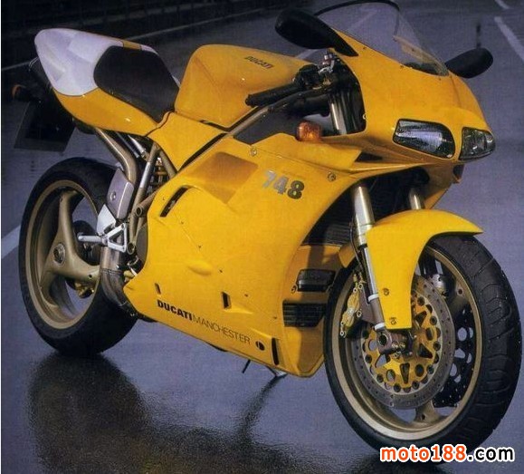 748SPS 生產(chǎn)年份1998-2000 引擎為液體冷卻四沖程雙氣缸;排量748;壓縮比11.6:1;最大馬力105hp11000rpm;最大扭矩74nm8700rpm;整車質(zhì)量196公斤;油箱17升;最高時(shí)速163英里/小時(shí)
