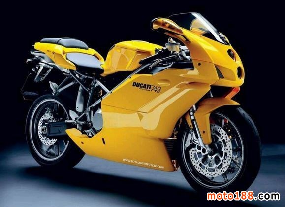 749 生產(chǎn)年份2003-2007 引擎為液體冷卻四沖程雙氣缸;排量748;壓縮比11.7:1;最大馬力103hp10000rpm;最大扭矩77nm8500rpm;整車質(zhì)量199公斤;油箱15.5升;四分之一英里11.2秒;最高時速250公里/小時