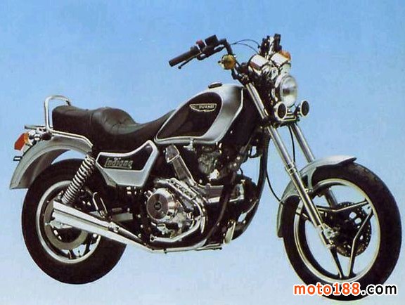 750 lindiana 生產(chǎn)年份1987-1990 引擎為空氣冷卻四沖程V型雙缸;排量748;壓縮比9.3:1;最大馬力53.6hp7000rpm;5檔位;整車質(zhì)量207公斤;油箱13升