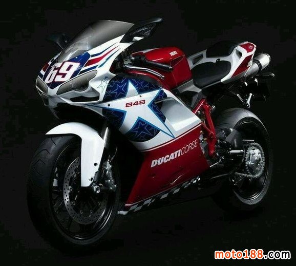 848 nicky hayden edition 生產(chǎn)年份2010 引擎為液體冷卻四沖程雙氣缸;排量848;壓縮比12.0:1;最大馬力134hp10000rpm;最大扭矩96nm8250rpm;6檔位;整車質(zhì)量168公斤;油箱16升