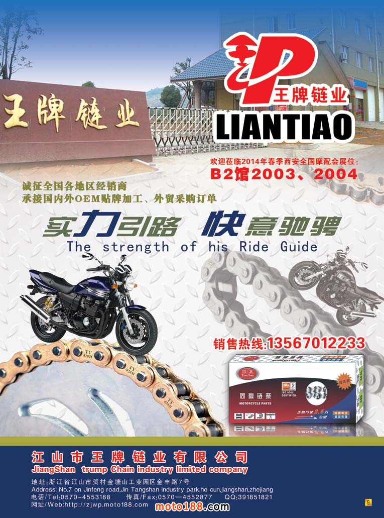 除了《西北市場指南》在會上投放,還有《會刊》由大會組委會分發(fā)給所有參會人員和企業(yè),我們的四月期全彩雜志以及第七期《摩托車與配件外貿(mào)報》。我們的展位在1142,歡迎在會上領(lǐng)取,指南需要名片交換,其余隨到隨取。