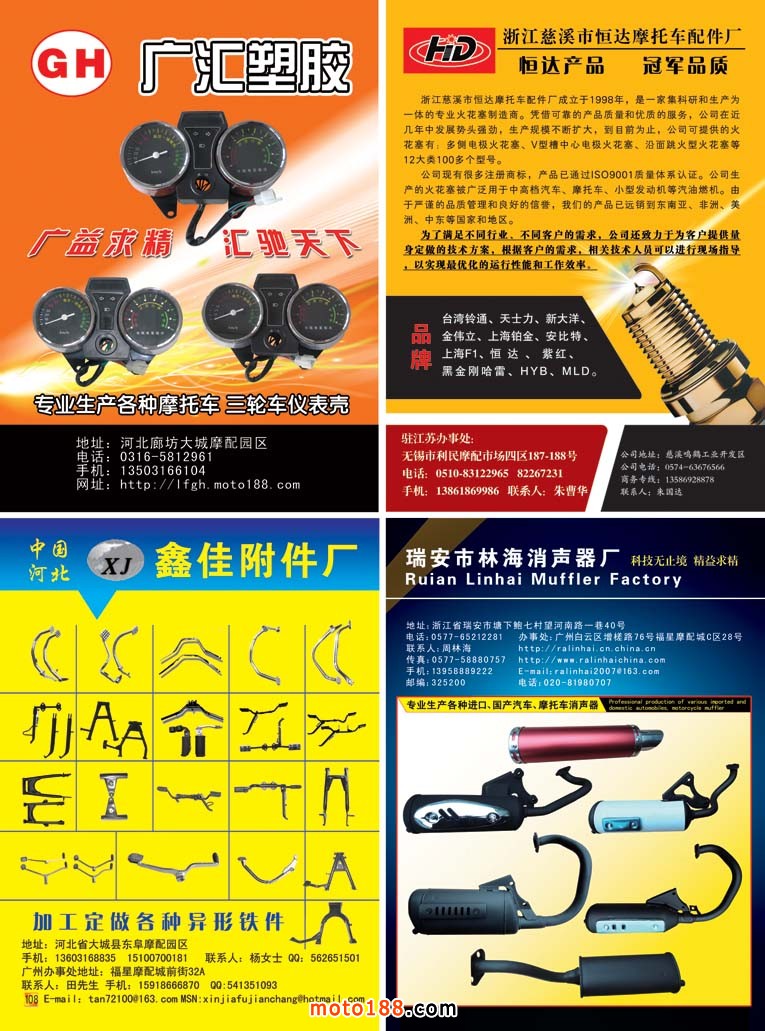 內(nèi)108 廣匯塑膠/浙江慈溪市恒達摩托車配件廠/鑫佳附件廠/瑞安市林海消聲器廠