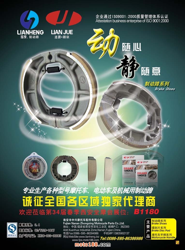 除了《西北市場指南》在會上投放,還有《會刊》由大會組委會分發(fā)給所有參會人員和企業(yè),我們的四月期全彩雜志以及第七期《摩托車與配件外貿(mào)報(bào)》。我們的展位在1142,歡迎在會上領(lǐng)取,指南需要名片交換,其余隨到隨取。