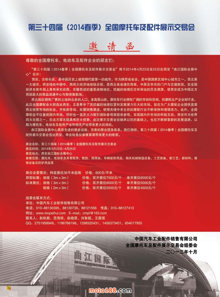 除了《西北市場指南》在會上投放,還有《會刊》由大會組委會分發(fā)給所有參會人員和企業(yè),我們的四月期全彩雜志以及第七期《摩托車與配件外貿(mào)報》。我們的展位在1142,歡迎在會上領(lǐng)取,指南需要名片交換,其余隨到隨取。