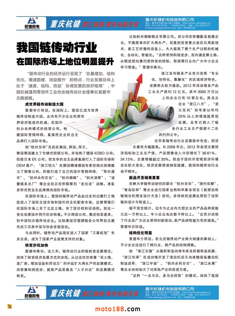 新的變革之后的《摩托車(chē)與配件》已經(jīng)出了四個(gè)配件子產(chǎn)業(yè)的專(zhuān)題,通過(guò)這種形式的變革,我們對(duì)摩托車(chē)配件的微觀行業(yè)也有了越來(lái)越深入的了解。每一個(gè)子行業(yè)也都有做得不錯(cuò)的龍頭企業(yè),他們?cè)谶@個(gè)子行業(yè)里通過(guò)橫向地拓展,觸角伸得也較廣泛。比如這一期是鏈條專(zhuān)題,其實(shí)不光摩托車(chē)用,電動(dòng)車(chē)、汽車(chē)、工業(yè)機(jī)械....只要需要傳動(dòng)的都有鏈條的身影。因而許多廠的產(chǎn)品也涉及了多行業(yè),但是我們僅選擇與我們產(chǎn)業(yè)有關(guān)的產(chǎn)品做一般的技術(shù)報(bào)道;前沿行業(yè)作泛泛報(bào)道;市場(chǎng)運(yùn)用方面則是盡可能以廣角報(bào)道。以前一些企業(yè)也在我們雜志上做過(guò)宣傳,因?yàn)槲覀冋J(rèn)識(shí)水平淺,不容易突出重點(diǎn)品牌企業(yè),因而在宣傳服務(wù)上也流于常規(guī)。但是通過(guò)這期專(zhuān)題后,我們了解到,像東華、恒久、順?lè)濉㈦p獅、征和等都是這個(gè)行業(yè)的龍頭企業(yè),而且這些龍頭企業(yè)后勁十足。他們不光在擴(kuò)大產(chǎn)能生產(chǎn);更是投入了相當(dāng)?shù)木υ诟憧蒲?;抑或引進(jìn)國(guó)外的先進(jìn)技術(shù),不光在做大更是在做強(qiáng),假以時(shí)日,他們也會(huì)在國(guó)際市場(chǎng)上占有一席之地。我們對(duì)這些企業(yè)充滿(mǎn)敬意,他們是民族工業(yè)的脊梁。雖然納稅沒(méi)有房地產(chǎn)企業(yè)多,也沒(méi)有金融和地產(chǎn)業(yè)的風(fēng)光,但他們沒(méi)有固步自封,也不滿(mǎn)足現(xiàn)狀,帶著創(chuàng)新和發(fā)展的精神趕德超日超美,縮短與國(guó)際水平的差距,也正是因?yàn)橛性S多像這樣的實(shí)體產(chǎn)業(yè),中國(guó)制造才能真正的做強(qiáng)。那些只制造虛的龐大GDP的、靠吸吮實(shí)體產(chǎn)業(yè)汁水而滋潤(rùn)的和靠壟斷而光鮮的行業(yè),在他們面前是多么的不堪。