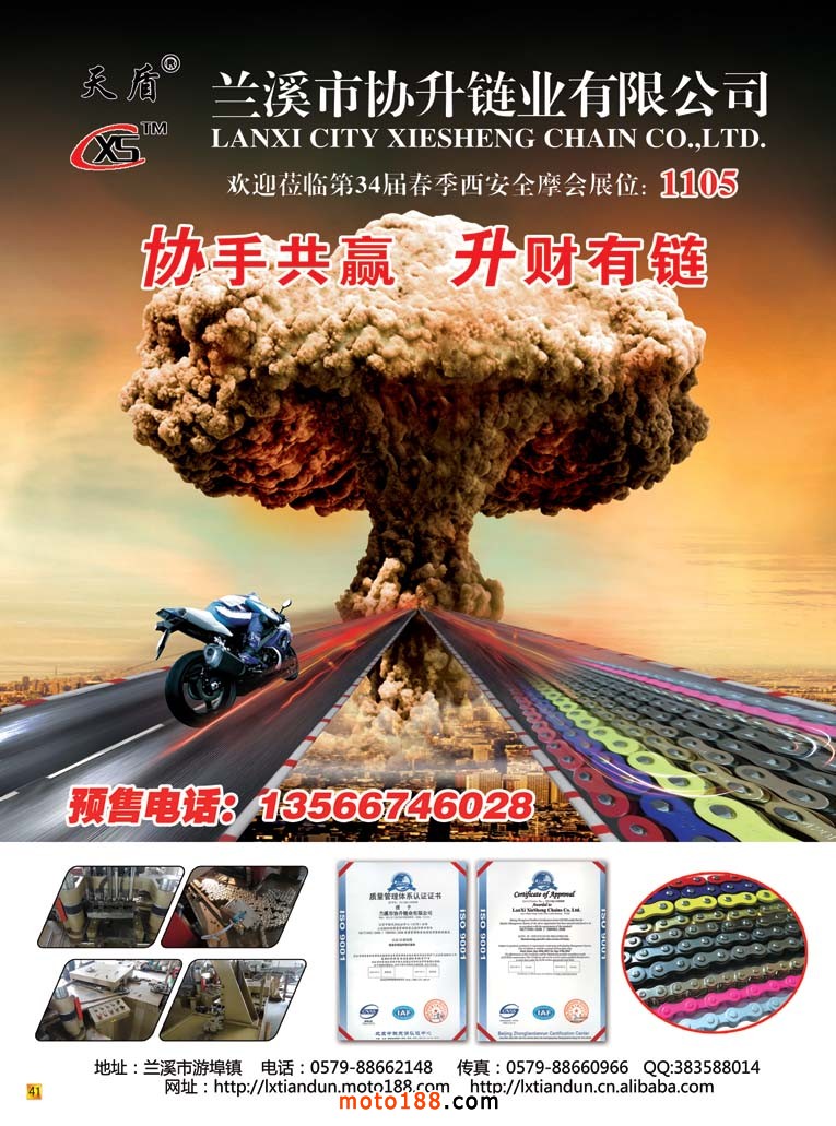 除了《西北市場(chǎng)指南》在會(huì)上投放,還有《會(huì)刊》由大會(huì)組委會(huì)分發(fā)給所有參會(huì)人員和企業(yè),我們的四月期全彩雜志以及第七期《摩托車與配件外貿(mào)報(bào)》。我們的展位在1142,歡迎在會(huì)上領(lǐng)取,指南需要名片交換,其余隨到隨取。