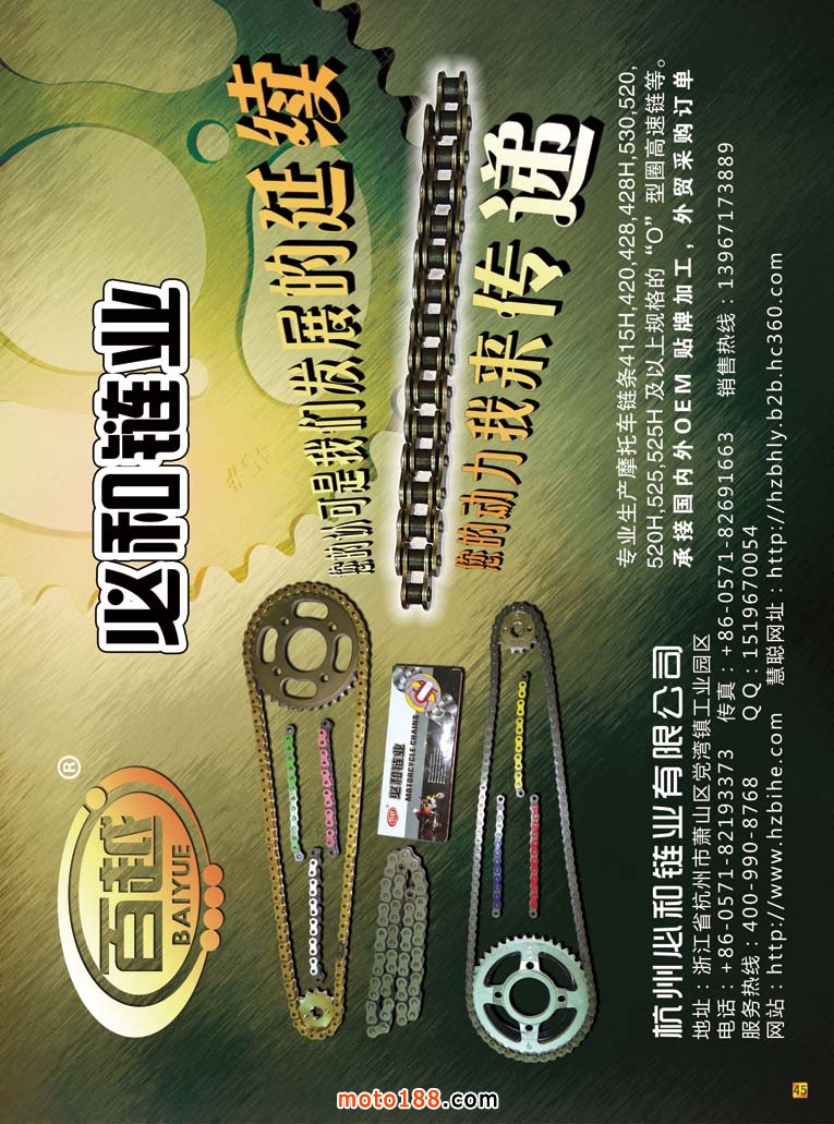 新的變革之后的《摩托車與配件》已經(jīng)出了四個配件子產(chǎn)業(yè)的專題,通過這種形式的變革,我們對摩托車配件的微觀行業(yè)也有了越來越深入的了解。每一個子行業(yè)也都有做得不錯的龍頭企業(yè),他們在這個子行業(yè)里通過橫向地拓展,觸角伸得也較廣泛。比如這一期是鏈條專題,其實不光摩托車用,電動車、汽車、工業(yè)機械....只要需要傳動的都有鏈條的身影。因而許多廠的產(chǎn)品也涉及了多行業(yè),但是我們僅選擇與我們產(chǎn)業(yè)有關(guān)的產(chǎn)品做一般的技術(shù)報道;前沿行業(yè)作泛泛報道;市場運用方面則是盡可能以廣角報道。以前一些企業(yè)也在我們雜志上做過宣傳,因為我們認識水平淺,不容易突出重點品牌企業(yè),因而在宣傳服務(wù)上也流于常規(guī)。但是通過這期專題后,我們了解到,像東華、恒久、順峰、雙獅、征和等都是這個行業(yè)的龍頭企業(yè),而且這些龍頭企業(yè)后勁十足。他們不光在擴大產(chǎn)能生產(chǎn);更是投入了相當?shù)木υ诟憧蒲校灰只蛞M國外的先進技術(shù),不光在做大更是在做強,假以時日,他們也會在國際市場上占有一席之地。我們對這些企業(yè)充滿敬意,他們是民族工業(yè)的脊梁。雖然納稅沒有房地產(chǎn)企業(yè)多,也沒有金融和地產(chǎn)業(yè)的風(fēng)光,但他們沒有固步自封,也不滿足現(xiàn)狀,帶著創(chuàng)新和發(fā)展的精神趕德超日超美,縮短與國際水平的差距,也正是因為有許多像這樣的實體產(chǎn)業(yè),中國制造才能真正的做強。那些只制造虛的龐大GDP的、靠吸吮實體產(chǎn)業(yè)汁水而滋潤的和靠壟斷而光鮮的行業(yè),在他們面前是多么的不堪。