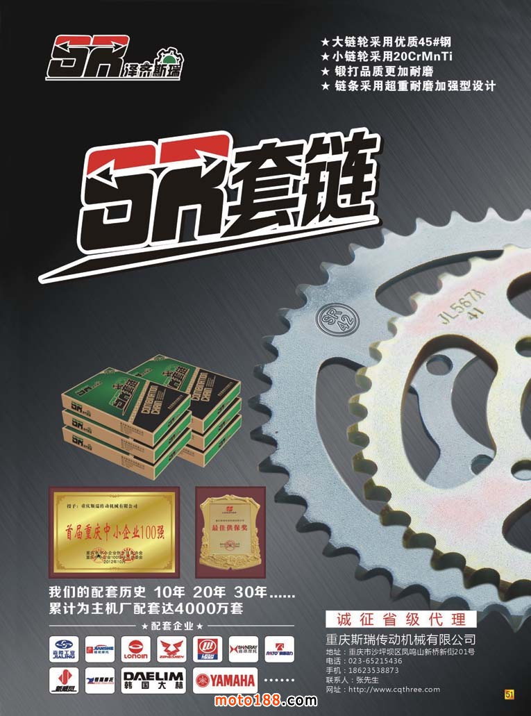 新的變革之后的《摩托車與配件》已經(jīng)出了四個配件子產(chǎn)業(yè)的專題,通過這種形式的變革,我們對摩托車配件的微觀行業(yè)也有了越來越深入的了解。每一個子行業(yè)也都有做得不錯的龍頭企業(yè),他們在這個子行業(yè)里通過橫向地拓展,觸角伸得也較廣泛。比如這一期是鏈條專題,其實不光摩托車用,電動車、汽車、工業(yè)機械....只要需要傳動的都有鏈條的身影。因而許多廠的產(chǎn)品也涉及了多行業(yè),但是我們僅選擇與我們產(chǎn)業(yè)有關的產(chǎn)品做一般的技術報道;前沿行業(yè)作泛泛報道;市場運用方面則是盡可能以廣角報道。以前一些企業(yè)也在我們雜志上做過宣傳,因為我們認識水平淺,不容易突出重點品牌企業(yè),因而在宣傳服務上也流于常規(guī)。但是通過這期專題后,我們了解到,像東華、恒久、順峰、雙獅、征和等都是這個行業(yè)的龍頭企業(yè),而且這些龍頭企業(yè)后勁十足。他們不光在擴大產(chǎn)能生產(chǎn);更是投入了相當?shù)木υ诟憧蒲?;抑或引進國外的先進技術,不光在做大更是在做強,假以時日,他們也會在國際市場上占有一席之地。我們對這些企業(yè)充滿敬意,他們是民族工業(yè)的脊梁。雖然納稅沒有房地產(chǎn)企業(yè)多,也沒有金融和地產(chǎn)業(yè)的風光,但他們沒有固步自封,也不滿足現(xiàn)狀,帶著創(chuàng)新和發(fā)展的精神趕德超日超美,縮短與國際水平的差距,也正是因為有許多像這樣的實體產(chǎn)業(yè),中國制造才能真正的做強。那些只制造虛的龐大GDP的、靠吸吮實體產(chǎn)業(yè)汁水而滋潤的和靠壟斷而光鮮的行業(yè),在他們面前是多么的不堪。