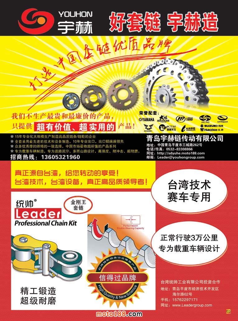 今年我們的雜志還涉及了三輪摩托車、電動摩托車和小型通機三個關(guān)連行業(yè),在我們m.vogueauto.cn網(wǎng)站上鏈接了三輪摩托車:sl .moto189com;電動摩托車dd .moto189.com;小型通機tj .moto189.com。前邊兩個字母分別是前兩個字的聲母很容易記住,大家有空可以去瀏覽。今年下半年我們將加大力量做好這三個網(wǎng)站,再往里面裝填更多內(nèi)容,爭取用一到二年時間,像我們 m.vogueauto.cn一樣成為行業(yè)的大型網(wǎng)站。