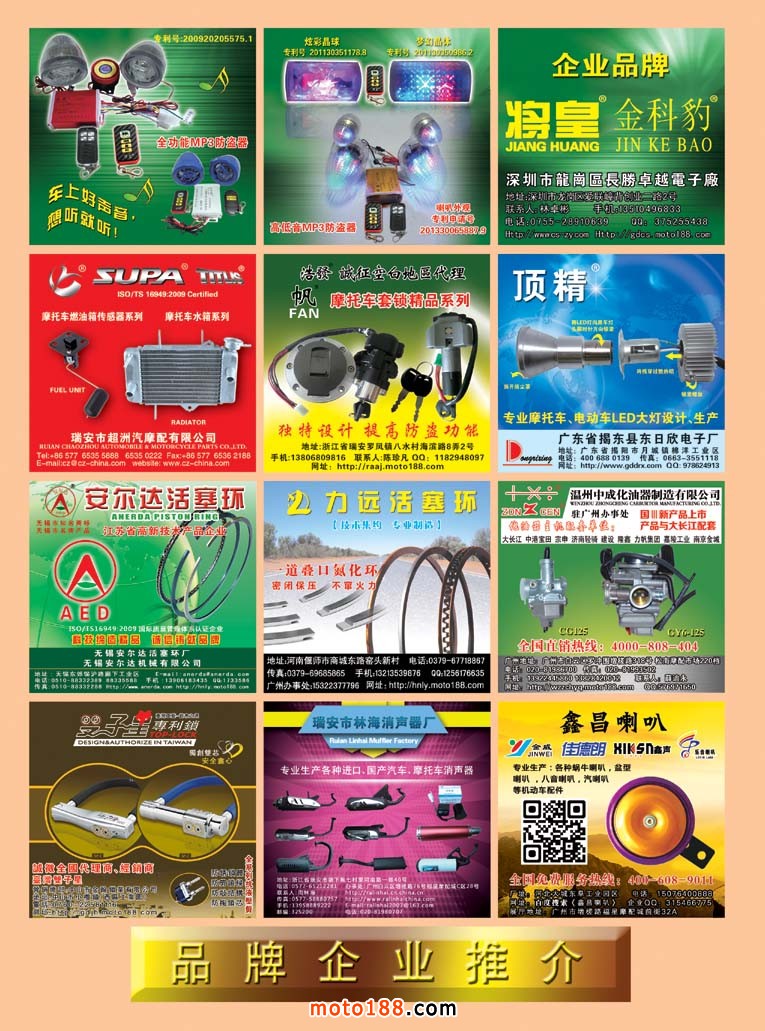 全摩會(huì)后,我們的工作是每月出一本雜志,同時(shí)編新版《華南市場指南》、第十二次《中國摩托車配件生產(chǎn)企業(yè)大全》升級(jí)版,在十一月份廣州會(huì)議上首發(fā)這兩本書。下半年廣州再見!