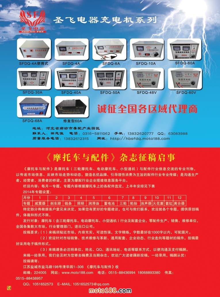 內(nèi)124 圣飛電器充電機/《摩托車與配件》雜志征稿啟事