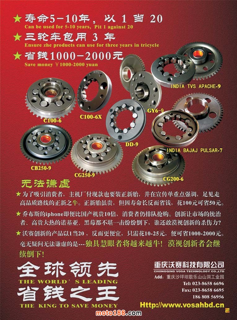 “沉舟側(cè)畔千帆過,病樹前頭萬木春”,半年的改版給我們帶來了良好的轉(zhuǎn)變,但我們不能固步自封,滿足現(xiàn)狀。會后我們就全行業(yè)形勢作了一個冷靜地思考,我們從五月份以后,對我們雜志再作一些微調(diào):在做好摩配信息服務(wù)的同時,加大向電動車及新能源產(chǎn)業(yè)進軍的步伐;這次刊頭作了新的設(shè)計,突出了電動車產(chǎn)業(yè),電動車涉及電動二輪、三輪、四輪;摩托車延伸向小型通機及三輪摩托車。每期我們在內(nèi)容上區(qū)分各個主題,摩托車配件、電動車及配件、三輪和通機,版面比例為6:4:2:2。這期我們精選了其它三個行業(yè)的信息,并用專題形式報道。今年六月中旬我們還將參加常州舉辦的電動車三輪車會議,八月上旬參加在鄭州舉辦的三輪車行業(yè)會議。在我們江、浙、滬長三角地區(qū)電動車產(chǎn)品既是主市場也是主產(chǎn)區(qū),我們要充分利用這地域優(yōu)勢做深做透。我們已經(jīng)著手改版我們專業(yè)的電動車網(wǎng)站, www.moto189.com。通過一段時間的努力,將它做成m.vogueauto.cn一樣的行業(yè)大型網(wǎng)站;同時我們先天的發(fā)行網(wǎng)絡(luò)優(yōu)勢,可以通過這個網(wǎng)絡(luò)發(fā)行到各省會城市市場,因為這些市場基本上是電動車和摩托車配件混生的;在江浙滬地區(qū),完成主要廠家的數(shù)據(jù)庫整理和完善并逐步發(fā)行到位。我想,通過一年的努力,我們在這些行業(yè)也會成為有影響力的媒體,我們有信心做好這項工作。在目前低迷的市場狀況下,我們增加了開拓市場的人員,將這些工作做實做透;同時為了我們的雜志能發(fā)行到這些新行業(yè)企業(yè)的手中,我們已經(jīng)增加了三分之一的印量。以后版本的《市場指南》我們也會將電動車企業(yè)一并收錄進來,明年的春天就可以見證至我們的努力成果。