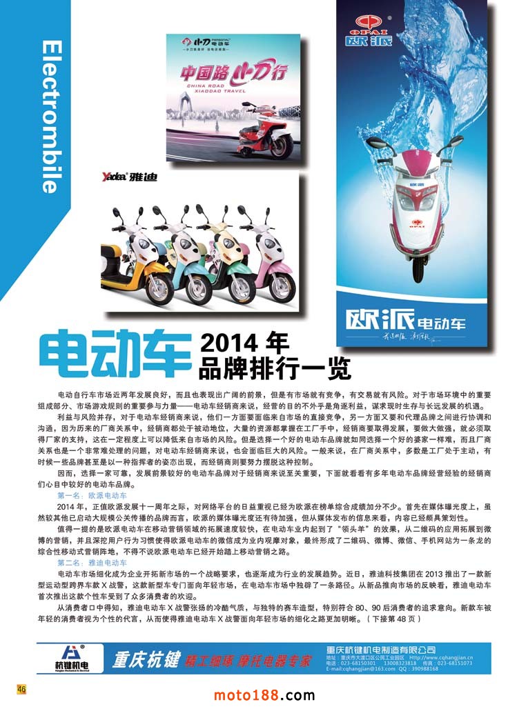 從去年年底,我們的雜志進(jìn)行了形式上改變和內(nèi)容上的改變。從摩托車配件引伸到電動車、三輪車和小型通機(jī),這是根據(jù)目前摩托車生產(chǎn)廠家和市場的變化而作的調(diào)整。這些工作實(shí)際是從去年11月份開始,到現(xiàn)在正好是半年。經(jīng)過改變后除了面目一新外,更是在技術(shù)普及和產(chǎn)業(yè)引伸方面下了功夫,我們的努力在上半年已經(jīng)得到部分的映證。今年我們制作的雜志、會刊、指南在廣告數(shù)量上都有一個(gè)新的突破,一舉扭轉(zhuǎn)了去年下半年的下滑勢頭。尤其今年第四期雜志,我們的后彩的廣告價(jià)格對于只做會期的企業(yè)進(jìn)行了上調(diào),廣告量不僅沒有減少,反而有所增加,在會期我們向同仁展示我們的勞動成果時(shí),大家一致認(rèn)為我們工作實(shí)在。