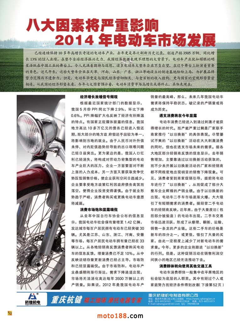 “沉舟側(cè)畔千帆過,病樹前頭萬木春”,半年的改版給我們帶來了良好的轉(zhuǎn)變,但我們不能固步自封,滿足現(xiàn)狀。會后我們就全行業(yè)形勢作了一個冷靜地思考,我們從五月份以后,對我們雜志再作一些微調(diào):在做好摩配信息服務(wù)的同時,加大向電動車及新能源產(chǎn)業(yè)進軍的步伐;這次刊頭作了新的設(shè)計,突出了電動車產(chǎn)業(yè),電動車涉及電動二輪、三輪、四輪;摩托車延伸向小型通機及三輪摩托車。每期我們在內(nèi)容上區(qū)分各個主題,摩托車配件、電動車及配件、三輪和通機,版面比例為6422。這期我們精選了其它三個行業(yè)的信息,并用專題形式報道。今年六月中旬我們還將參加常州舉辦的電動車三輪車會議,八月上旬參加在鄭州舉辦的三輪車行業(yè)會議。在我們江、浙、滬長三角地區(qū)電動車產(chǎn)品既是主市場也是主產(chǎn)區(qū),我們要充分利用這地域優(yōu)勢做深做透。我們已經(jīng)著手改版我們專業(yè)的電動車網(wǎng)站, www.moto189.com。通過一段時間的努力,將它做成m.vogueauto.cn一樣的行業(yè)大型網(wǎng)站;同時我們先天的發(fā)行網(wǎng)絡(luò)優(yōu)勢,可以通過這個網(wǎng)絡(luò)發(fā)行到各省會城市市場,因為這些市場基本上是電動車和摩托車配件混生的;在江浙滬地區(qū),完成主要廠家的數(shù)據(jù)庫整理和完善并逐步發(fā)行到位。我想,通過一年的努力,我們在這些行業(yè)也會成為有影響力的媒體,我們有信心做好這項工作。在目前低迷的市場狀況下,我們增加了開拓市場的人員,將這些工作做實做透;同時為了我們的雜志能發(fā)行到這些新行業(yè)企業(yè)的手中,我們已經(jīng)增加了三分之一的印量。以后版本的《市場指南》我們也會將電動車企業(yè)一并收錄進來,明年的春天就可以見證至我們的努力成果。