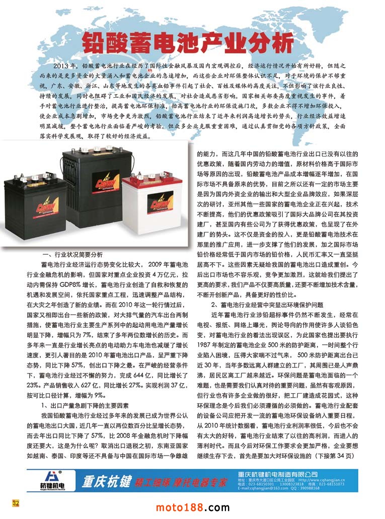 這一期是電池的專(zhuān)題,是摩托車(chē)和電動(dòng)車(chē)都必須要用的重要部件。我們從龐雜的資料中精選了十四頁(yè)內(nèi)容,其中有一篇是由企業(yè)提供的稿件。我們歡迎企業(yè)能踴躍投稿,將你們的技術(shù)和經(jīng)驗(yàn)與行業(yè)共同分享,提升行業(yè)整體素質(zhì),同時(shí)也可以通過(guò)我們這個(gè)平臺(tái)來(lái)提升企業(yè)的知譽(yù)度。