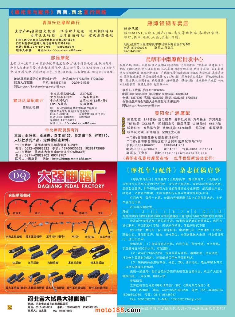 內62 發(fā)行網(wǎng)絡5/大強腳踏廠/《摩托車與配件》雜志征稿啟事