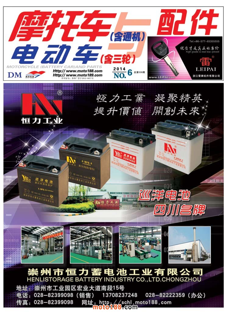 這一期是電池的專題,是摩托車和電動(dòng)車都必須要用的重要部件。我們從龐雜的資料中精選了十四頁內(nèi)容,其中有一篇是由企業(yè)提供的稿件。我們歡迎企業(yè)能踴躍投稿,將你們的技術(shù)和經(jīng)驗(yàn)與行業(yè)共同分享,提升行業(yè)整體素質(zhì),同時(shí)也可以通過我們這個(gè)平臺來提升企業(yè)的知譽(yù)度。