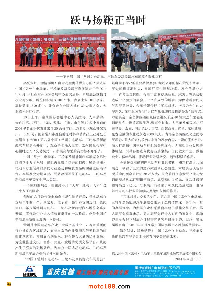 www.moto189.com。同時(shí),我們將參加下半年所有有關(guān)全國性和地方性的新能源展會(huì)。雜志板式為全彩105克銅版紙,大16K國際標(biāo)準(zhǔn)版,雜志印刷精美;全本雜志不以純廣告出刊,將有不少于五分之二的信息資訊內(nèi)容發(fā)布。出刊后面向全行業(yè)贈(zèng)送,歡迎大家索取,從明年后將以月刊的形式定期出刊。