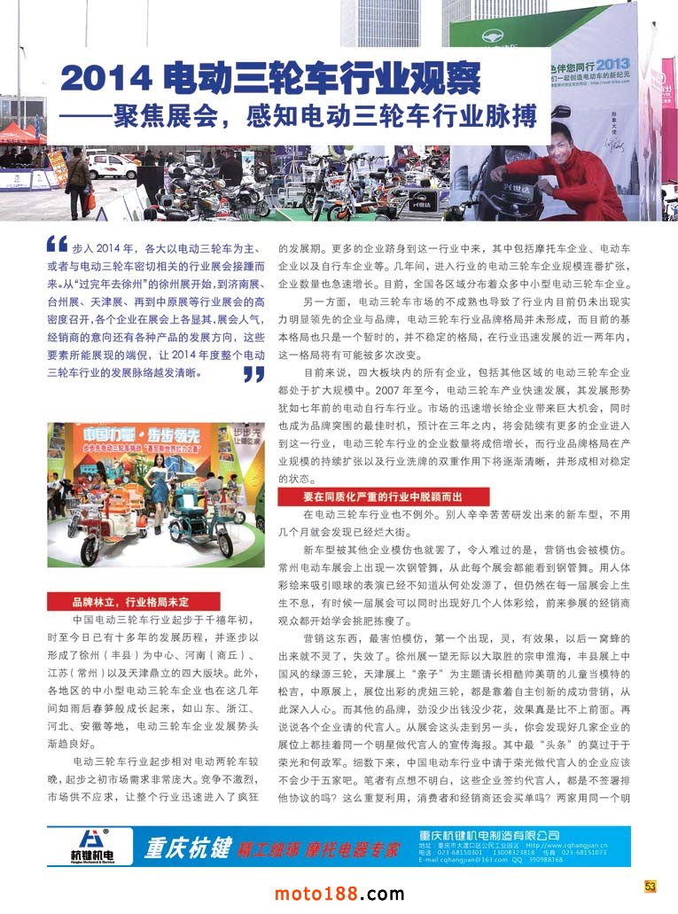 www.moto189.com。同時(shí),我們將參加下半年所有有關(guān)全國性和地方性的新能源展會(huì)。雜志板式為全彩105克銅版紙,大16K國際標(biāo)準(zhǔn)版,雜志印刷精美;全本雜志不以純廣告出刊,將有不少于五分之二的信息資訊內(nèi)容發(fā)布。出刊后面向全行業(yè)贈(zèng)送,歡迎大家索取,從明年后將以月刊的形式定期出刊。