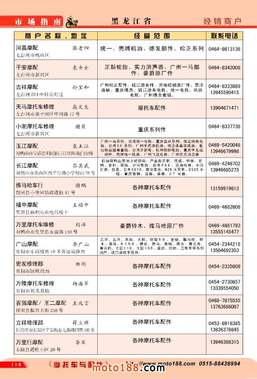歷時半年,橫跨十三省市的《北方市場指南》今天終于成書,奉獻給行業(yè)企業(yè),這本書是我們《中國摩托車配件市場指南》的第三個分冊,也是工作量和難度最大的一本書,為了資料的準確,我們雜志社全體內(nèi)部工作人員,在炎熱的夏季里,孜孜不倦地工作,先后冒著酷暑兵分三 路去西北、華北、東北的省份,由于夏季暑運高峰,交通也十分不便,有時為了趕路,甚至乘了三十多個小時無空調(diào)的大巴車。今天看到這本混合我們汗水和心血的《北方市場指南》我們感覺這份果實更加不同尋常,彌加珍貴。
