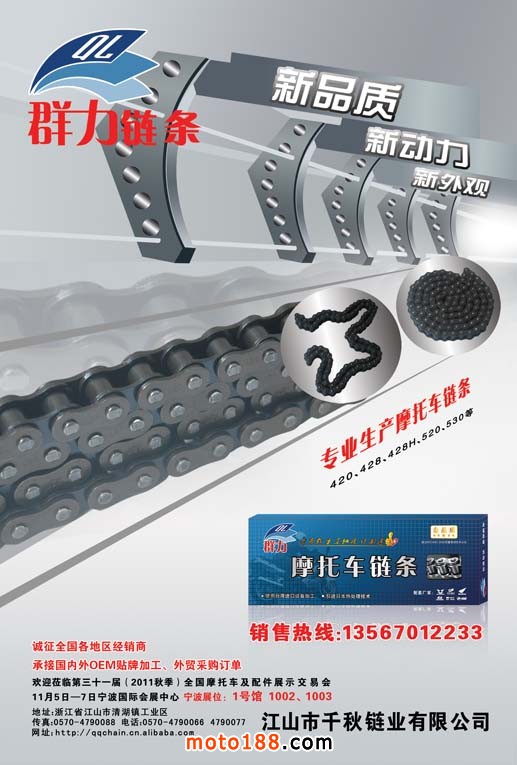 2012年春,行業(yè)最具影響力的“春季全摩會”4月27日在重慶召開,我們將在特殊的時間,特 殊的地域,特殊的市場,推出獨(dú)具特色的《中國摩托車配件·西南市場指南》,為您的經(jīng)營提供方向,為您的騰飛插上翅膀。