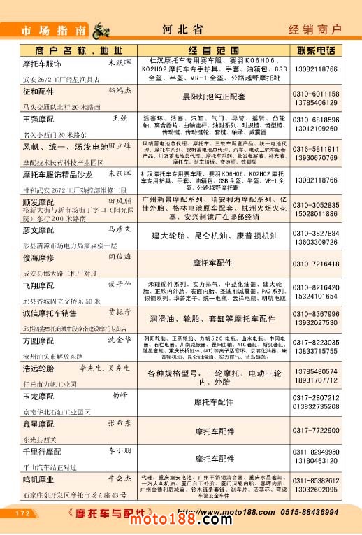 目前本系列書籍已成功出版了三個(gè)系列,由于我們的真心付出,市場(chǎng)的反響也越來(lái)越好,本來(lái)我們計(jì)劃在全國(guó)摩配會(huì)前截稿,由于廣告突破了我們的計(jì)劃,我們提前一個(gè)月出版,本書 的信息量也比以往大,廣告量如不控制將會(huì)爆發(fā)性增長(zhǎng),書太厚不方便大家的使用,因而我們 毅然提前停止了廣告的征集。