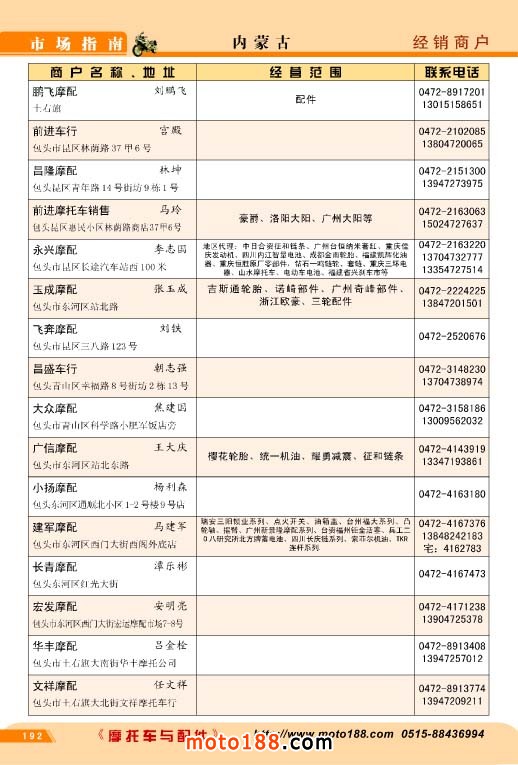 目前本系列書籍已成功出版了三個系列,由于我們的真心付出,市場的反響也越來越好,本來我們計劃在全國摩配會前截稿,由于廣告突破了我們的計劃,我們提前一個月出版,本書 的信息量也比以往大,廣告量如不控制將會爆發(fā)性增長,書太厚不方便大家的使用,因而我們 毅然提前停止了廣告的征集。