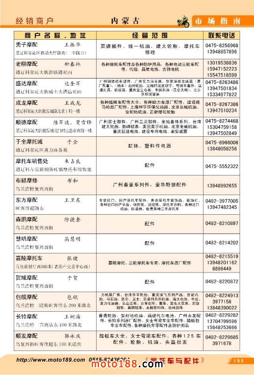 歷時半年,橫跨十三省市的《北方市場指南》今天終于成書,奉獻給行業(yè)企業(yè),這本書是我們《中國摩托車配件市場指南》的第三個分冊,也是工作量和難度最大的一本書,為了資料的準確,我們雜志社全體內(nèi)部工作人員,在炎熱的夏季里,孜孜不倦地工作,先后冒著酷暑兵分三 路去西北、華北、東北的省份,由于夏季暑運高峰,交通也十分不便,有時為了趕路,甚至乘了三十多個小時無空調(diào)的大巴車。今天看到這本混合我們汗水和心血的《北方市場指南》我們感覺這份果實更加不同尋常,彌加珍貴。