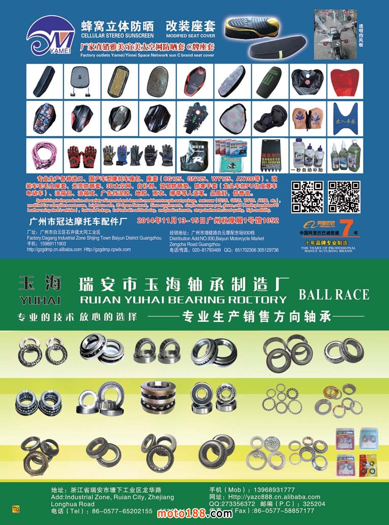 內(nèi)118 廣州市冠達摩托車配件廠/瑞安市玉海軸承制造廠