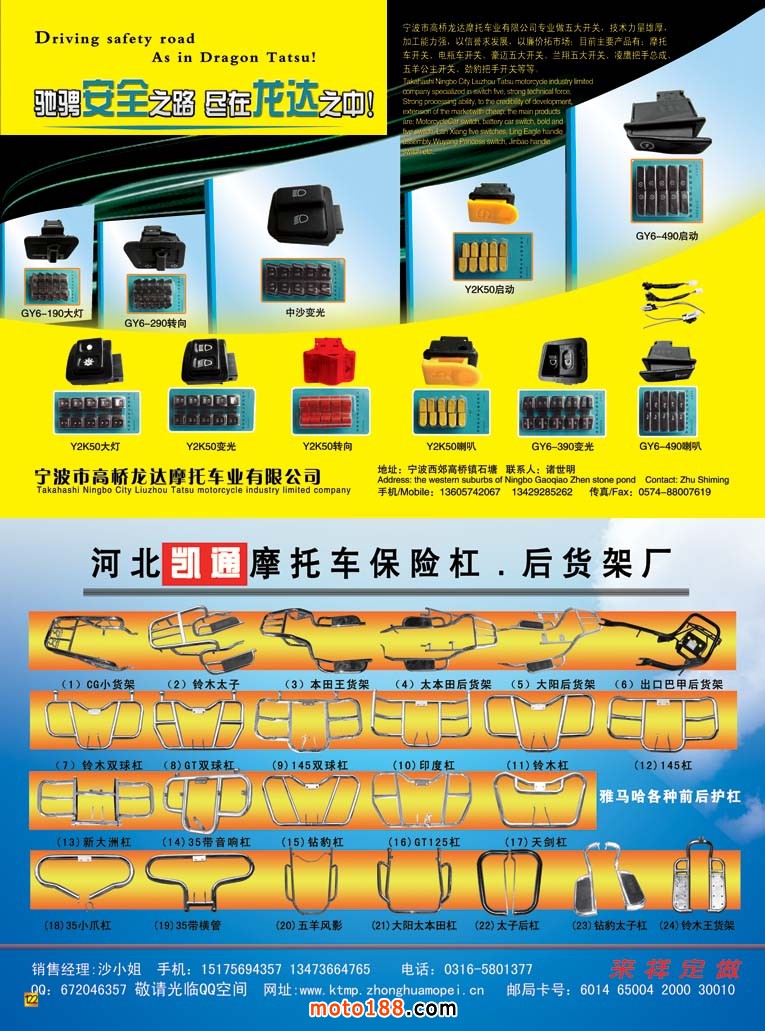2014.8雜志(輪胎)日期:2014-03-21 點(diǎn)擊:2055 查看原圖 全部展開(kāi)![]() ![]() ![]() 內(nèi)122 寧波市高橋龍達(dá)摩托車業(yè)有限公司/河北凱通摩托車保險(xiǎn)杠后貨架廠