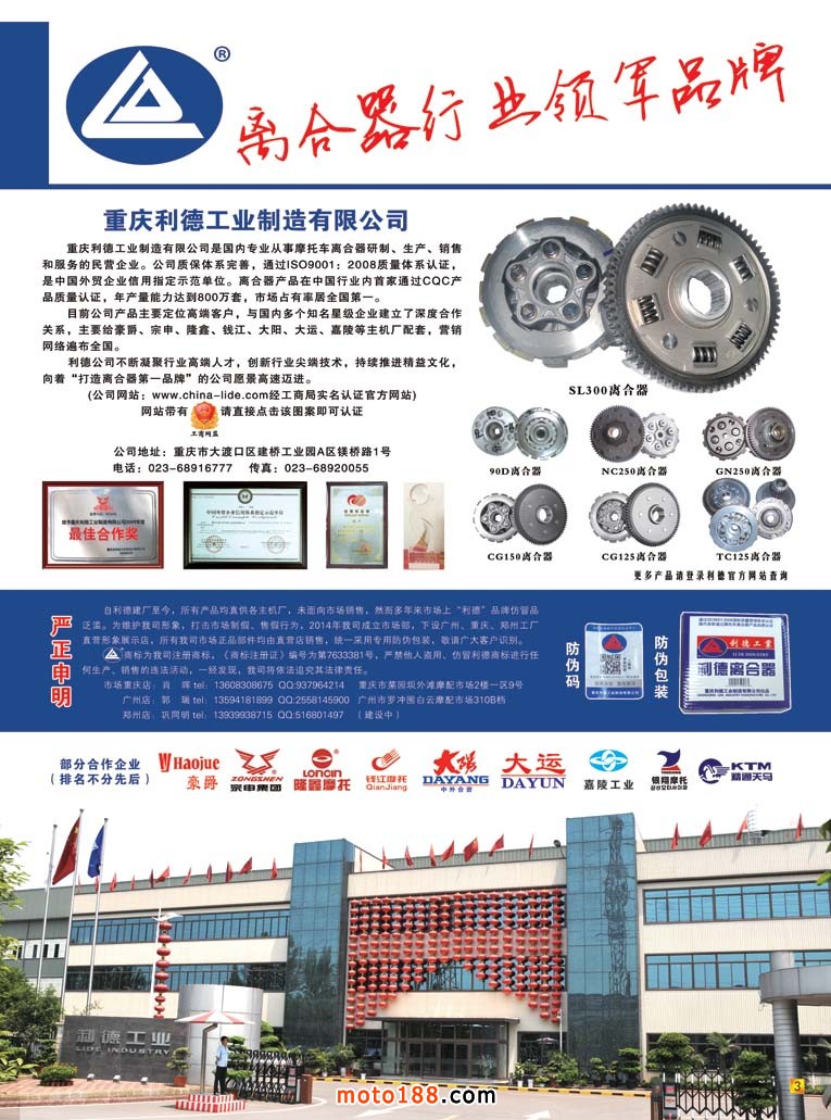 炎熱的夏季終將過去,收獲的秋天在等待我們,從下一期雜志開始,我們就要為廣州全摩會(huì)做準(zhǔn)備工作了,在這個(gè)會(huì)上,我們會(huì)向全體參會(huì)人員奉獻(xiàn)兩本數(shù)據(jù)庫類書籍,一本是生產(chǎn)廠家的《摩托車配件生產(chǎn)企業(yè)大全》,在這一個(gè)升級版中,我們新增加十幾個(gè)大的摩托車整車生產(chǎn)廠家資料,同時(shí)增加二十家電動(dòng)車生產(chǎn)廠家及十幾家三輪摩托車和三輪電動(dòng)車廠家,努力根據(jù)市場需要豐富書的內(nèi)容。還有一本就是第二次升級的《華南市場指南》收集廣東和海南兩省的經(jīng)銷商資料匯總,其中,廣東省的廣州市的市場用中英文出版,目前各項(xiàng)工作正緊張有序的進(jìn)行,歡迎大家在全摩會(huì)期間來廣州保利展館分享我們的勞動(dòng)果實(shí)。春種一粒粟,秋收萬顆籽。
