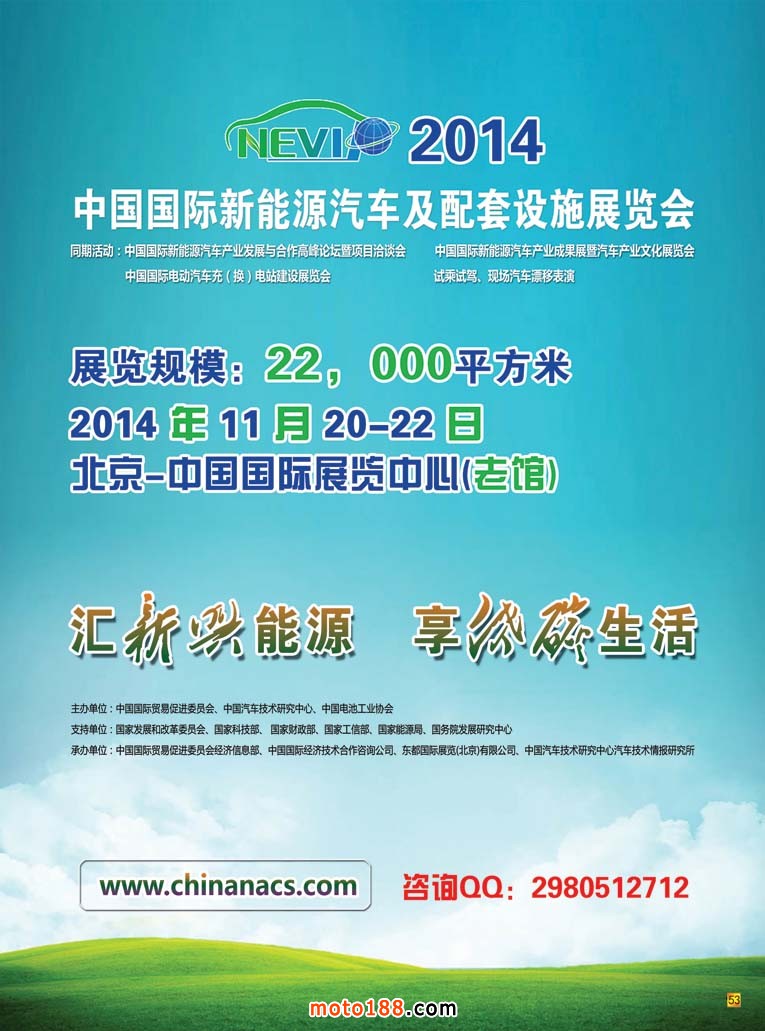 7月一年里最炎熱的時節(jié),也是南方行業(yè)的淡季。在這個炎夏我們完成了《新能源車》的編輯和制作。這是目前國內第一本定位于新能源汽車的專業(yè)雜志,之前雖然有三四家雜志涉及到新能源車,但是他們還是以二輪、三輪電動車為主,新能源汽車只是作為其中的一個補充。需要了解這本雜志和這個新興行業(yè)的企業(yè),如果提供地址,我們可以郵寄給你們;也可以在m.vogueauto.cn或www.moto189.com這兩個網站里都可以看到,在線上閱讀,我們還制作成了PDF格式文件,可以下載在線下閱讀;這之中我們還在八、九兩個月參加所有涉及新能源車的全國和地方性展會,今年第七期雜志中介紹的會議,我們都有固定的展位,歡迎光臨我們的展位直接領取。