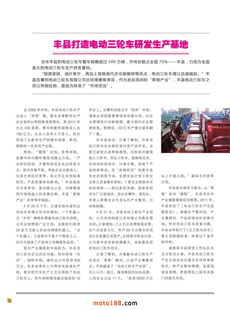 內(nèi)56 豐縣打造電動三輪車研發(fā)生產(chǎn)基地