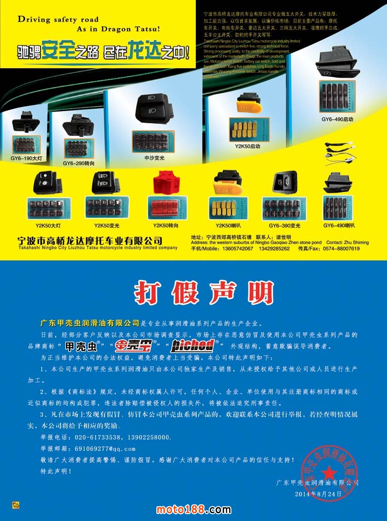 內(nèi)126 寧波市高橋龍達摩托車業(yè)有限公司、廣東甲殼蟲潤滑油有限公司