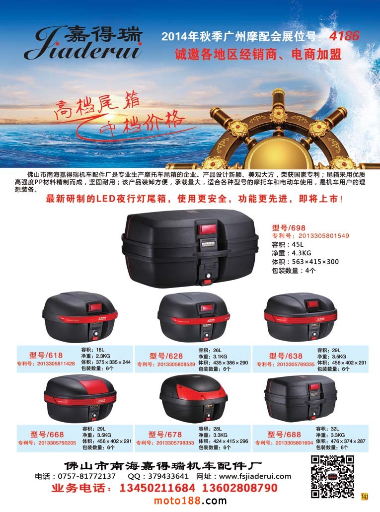 全摩會還有2個多月就在廣州召開了,這次會上我們將奉獻給大家的是第12次升級的《中國摩托車配件生產(chǎn)企業(yè)大全》在這本書中。我們新增了目錄銷售排名前10-20名的摩托車整車生產(chǎn)企業(yè),二輪電動車生產(chǎn)企業(yè)、燃油和電動三輪生產(chǎn)企業(yè)的名錄,方便大家在增加經(jīng)營的同時,有所選擇和參考?!度A南市場指南》含廣東和海南兩省市場經(jīng)銷商戶的資料,其中的廣州白云區(qū)羅沖圍一帶的市場是用中英文雙語編排,方便外商的閱讀;其余例行的十一期雜志和外貿(mào)報紙;另外還有部分華東和西北地區(qū)的新的市場指南(已經(jīng)在南京和西安會議首發(fā))。如果有興趣從事新能源汽車業(yè)務(wù)的企業(yè)也可拿到《新能源車》雜志。這是我們新出的雜志,具體可去moto189網(wǎng)站上瀏覽到全部的內(nèi)容,在此不多贅述。記住廣州再見,帶上你的名片到1075展位領(lǐng)書去!