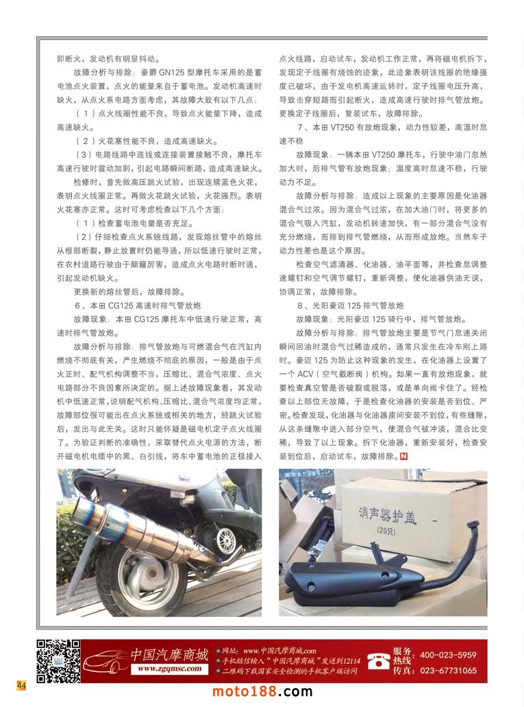內(nèi)44 摩托車消聲器放炮和冒黑煙故障的檢修