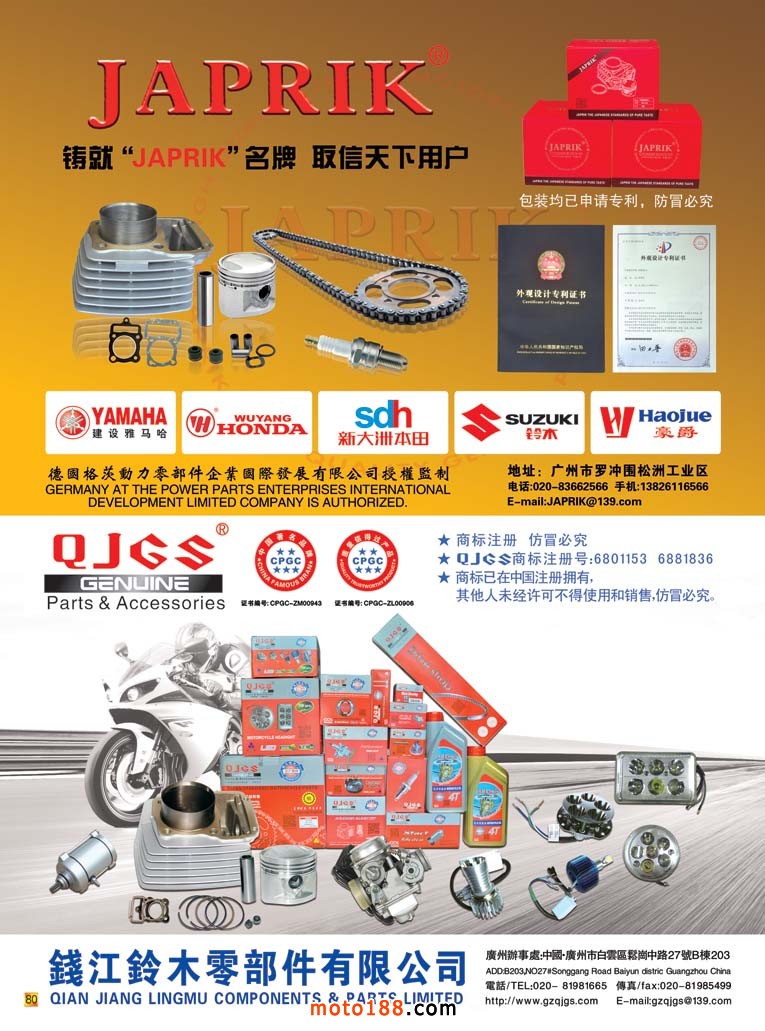 全摩會(huì)還有2個(gè)多月就在廣州召開了,這次會(huì)上我們將奉獻(xiàn)給大家的是第12次升級(jí)的《中國(guó)摩托車配件生產(chǎn)企業(yè)大全》在這本書中。我們新增了目錄銷售排名前10-20名的摩托車整車生產(chǎn)企業(yè),二輪電動(dòng)車生產(chǎn)企業(yè)、燃油和電動(dòng)三輪生產(chǎn)企業(yè)的名錄,方便大家在增加經(jīng)營(yíng)的同時(shí),有所選擇和參考?!度A南市場(chǎng)指南》含廣東和海南兩省市場(chǎng)經(jīng)銷商戶的資料,其中的廣州白云區(qū)羅沖圍一帶的市場(chǎng)是用中英文雙語(yǔ)編排,方便外商的閱讀;其余例行的十一期雜志和外貿(mào)報(bào)紙;另外還有部分華東和西北地區(qū)的新的市場(chǎng)指南(已經(jīng)在南京和西安會(huì)議首發(fā))。如果有興趣從事新能源汽車業(yè)務(wù)的企業(yè)也可拿到《新能源車》雜志。這是我們新出的雜志,具體可去moto189網(wǎng)站上瀏覽到全部的內(nèi)容,在此不多贅述。記住廣州再見,帶上你的名片到1075展位領(lǐng)書去!